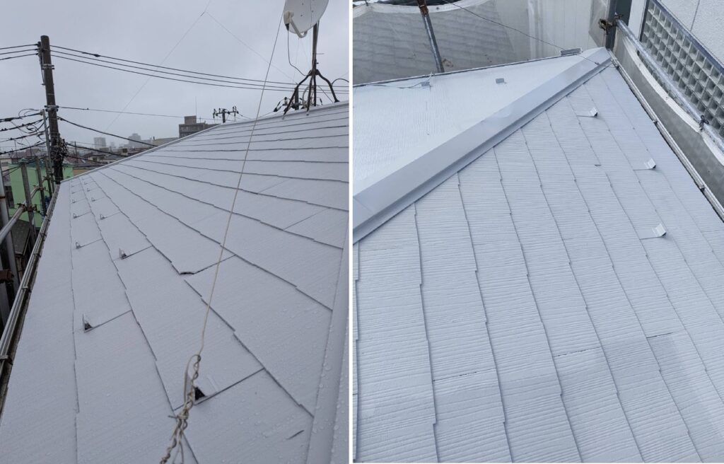 屋根塗装工事が完工しました。 2026年4月3日 最終更新日時 : 2026年4月3日 admin 東京都江戸川区 K・S 様邸 屋根の塗装をさせていただきました。 これから暑い夏に向けて 高遮熱の塗料 サーモアイ 高反射のシルバーのお色を使いました。 この夏は、省エネ間違いなしで、快適にお過ごしいただけます。