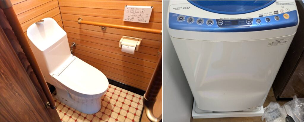 トイレをウォシュレットに交換し、洗濯機防水パンを設置しました。