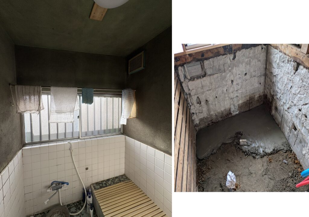 既存のタイル浴室を解体して、土間の打ち直しから改修させていただきました。