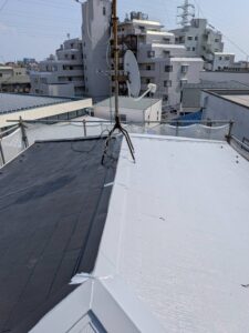 東京都江戸川区 K・S 様邸 屋根の塗装をさせていただきました。 これから暑い夏に向けて 高遮熱の塗料 サーモアイ 高反射のシルバーのお色を使いました。 この夏は、省エネ間違いなしで、快適にお過ごしいただけます。