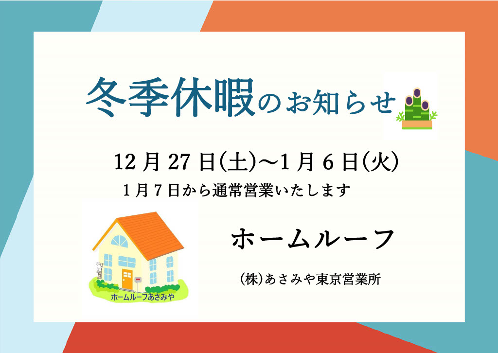 12月27日(土)~1月6日(火) 1月7日(水)より通常営業いたします。