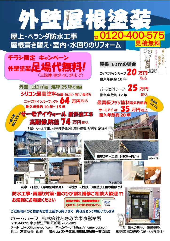 春の塗装シーズン 足場代無料キャンペーンのお知らせ! 2026年3月25日 最終更新日時 : 2026年3月25日 admin 桜が咲き始めて、気持ちの良い季節ですね。 お住いも素敵に塗装して、快適にすごしませんか?